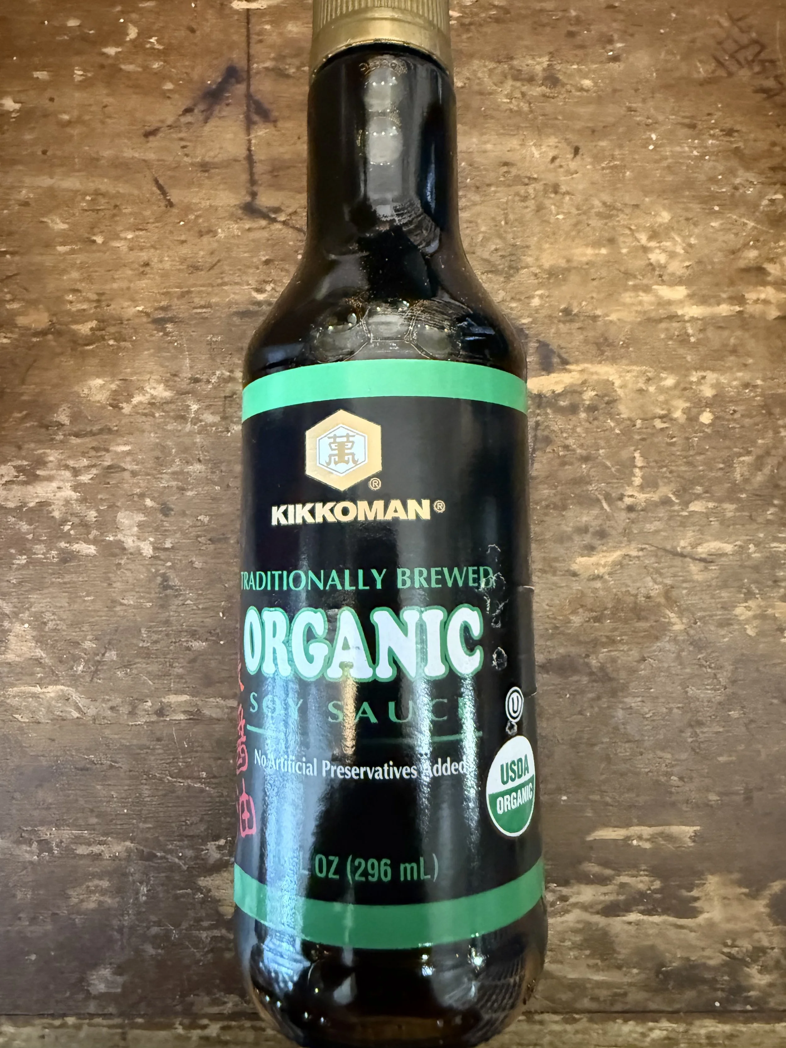 organic whole soybeans, mountain spring water, organic whole wheat, sea salt, and aspergillus oryzae (koji).